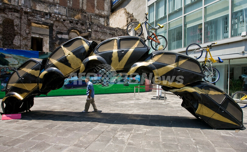 メキシコ市(Mexico City)で開催されたメキシコ人アーティストBetsabee Romeroの展覧会「A vuelta de rueda」に展示された「乗り越える」と題された作品(2009年3月24日撮影)。(c)AFP/Ronaldo SCHEMIDT