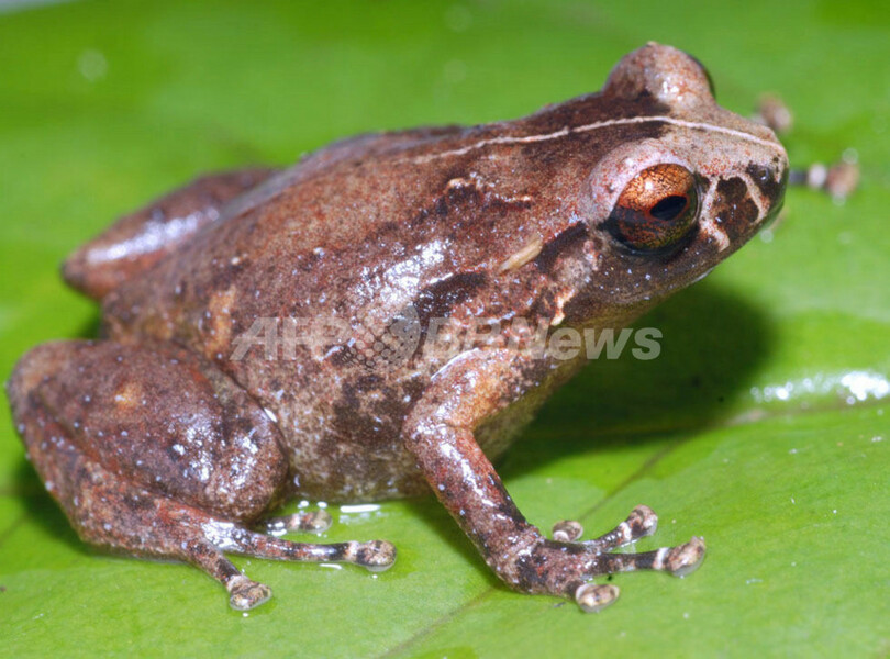 そのうち、飛び跳ねるものを含むクモ50種、植物2種、高い声で鳴くものを含むカエル3種、華麗なしま模様のヤモリ1種の計56種は、まったくの新種とみられている。(c)AFP