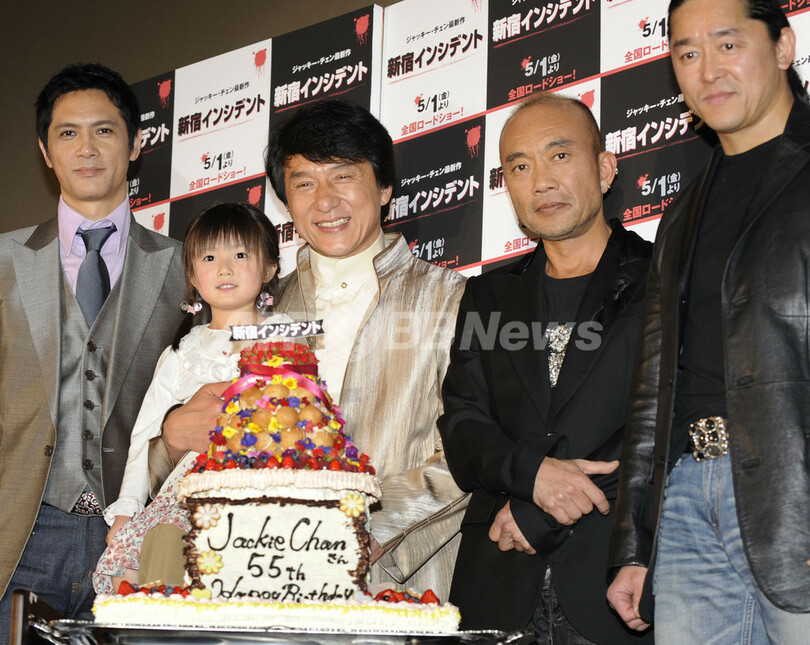 【3月27日 AFP】ジャッキー・チェン(Jackie Chan )主演の映画『新宿インシデント(Shinjuku Incident)』のジャパンプレミアが26日、都内で開催された。来日中のジャッキーは、共演者の竹中直人(Naoto Takenaka)、加藤雅也(Masaya Kato)、拳也(Kenya)、子役の庵原涼香(Ryoka Ihara)とともにステージに上がり、舞台あいさつを行った。