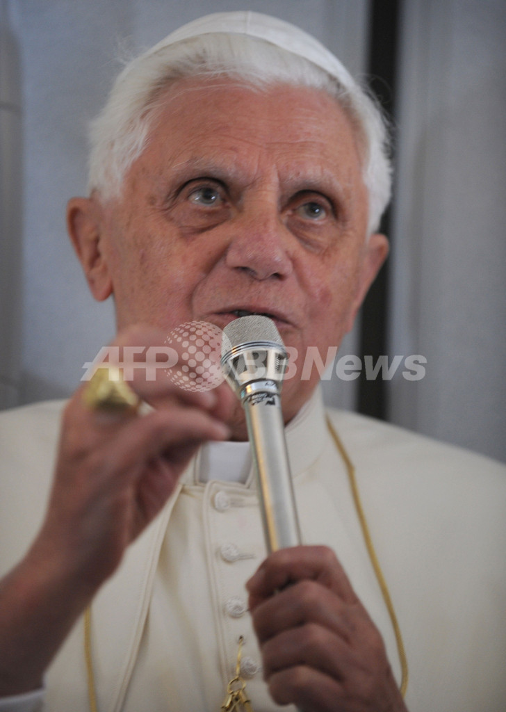 ベネディクト16世は17日、カメルーンのヤウンデ(Yaounde)に向かう機内で、エイズ問題について「資金のみで克服することはできない悲劇。コンドームの配布によって克服することもできないし、むしろ問題を悪化させる」と語った。(c)AFP