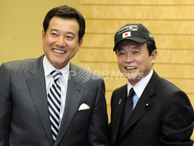 WBC日本代表の原監督、麻生首相に優勝を報告
