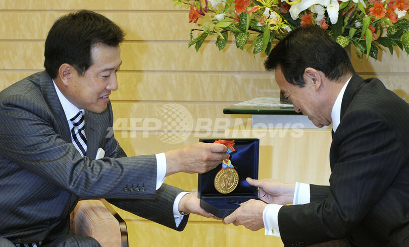 WBC日本代表の原監督、麻生首相に優勝を報告