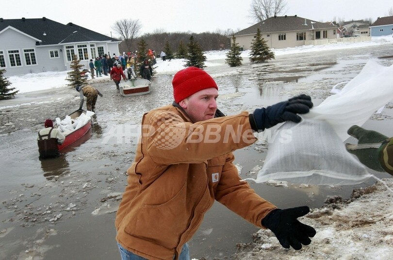 同州と、隣接するミネソタ(Minnesota)州との州境を流れるレッド・リバー(Red River)の水位は上がり続け、川沿いの街ファーゴ(Fargo)などでは、堤防を守るためボランティアたちが懸命の作業を続けている。