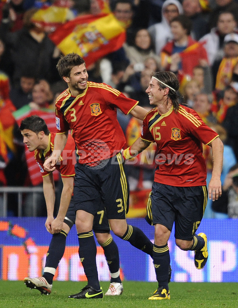 スポーツ サッカー スペイン トルコを下し5連勝、W杯予選 2009年3月29日 10:09 発信地:マドリード/スペイン [ ヨーロッパ スペイン ] このニュースをシェア ‹ › ❮ 1/15 ❯ 2010年サッカーW杯南アフリカ大会欧州予選・グループ5、スペイン対トルコ。後半15分に得点を決め、セルヒオ・ラモス(%%Sergio Ramos%%、右)と喜びを分かち合うスペインのジェラール・ピケ(%%Gerard Pique%%、中央)。(2009年3月28日)(c)AFP/PIERRE-PHILIPPE MARCOU 画像作成中 ! 【3月29日 AFP】2010年サッカーW杯南アフリカ大会(2010 World Cup)欧州予選・グループ5、スペイン対トルコ。試合はスペインが1-0で勝利し、5連勝を飾った。 スペインは、後半15分にジェラール・ピケ(Gerard Pique)の得点で均衡を破り、勝利した。(c)AFP サッカー 一覧へ> メディア・報道関係・法人の方向け 写真・動画 購入のお問合せ>