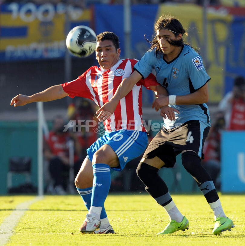 【3月29日 AFP】2010年サッカーW杯南アフリカ大会(2010 World Cup)南米予選第11節、ウルグアイ対パラグアイ。試合は2-0でウルグアイが勝利した。