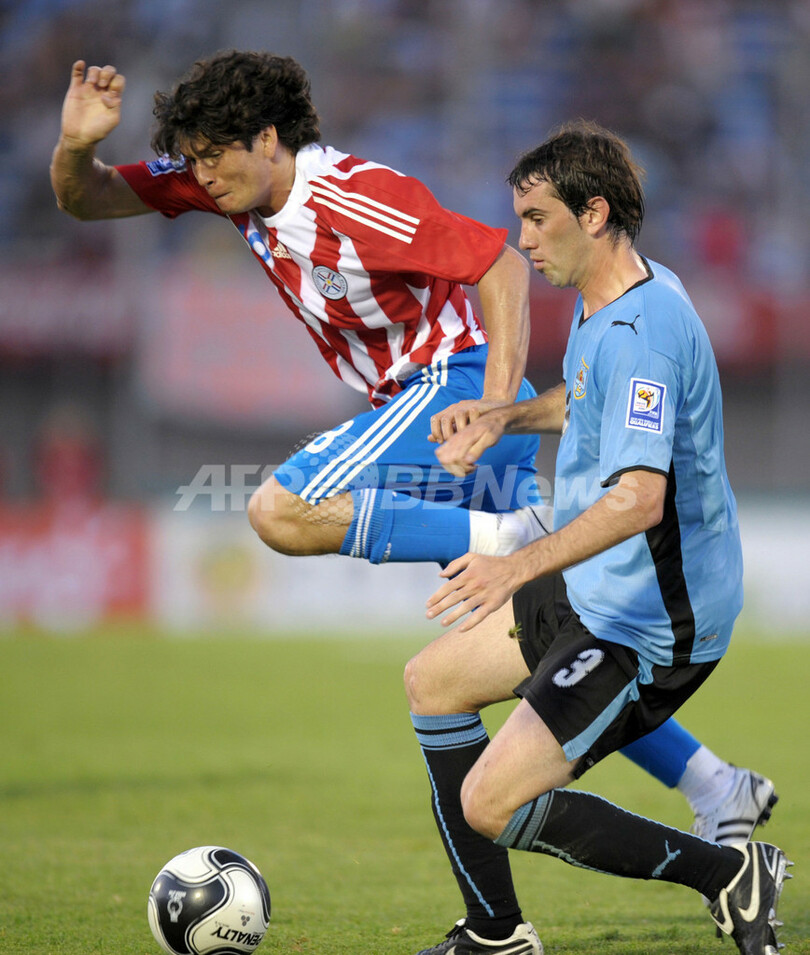 【3月29日 AFP】2010年サッカーW杯南アフリカ大会(2010 World Cup)南米予選第11節、ウルグアイ対パラグアイ。試合は2-0でウルグアイが勝利した。