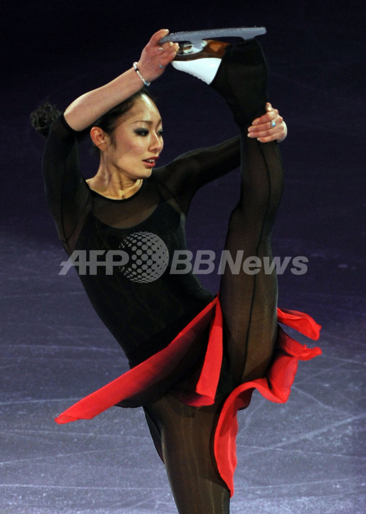 09世界フィギュアスケート選手権(%%ISU World Figure Skating Championships 2009%%)のエキシビションが29日、ロサンゼルス(Los Angeles)のステープルズ・センター(Staples Center)で行われた。写真は演技を披露する安藤美姫(%%Miki Ando%%)。(2009年3月29日撮影)(c)AFP/GABRIEL BOUYS