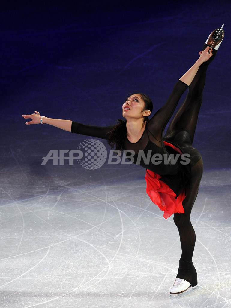 09世界フィギュアスケート選手権(%%ISU World Figure Skating Championships 2009%%)のエキシビションが29日、ロサンゼルス(Los Angeles)のステープルズ・センター(Staples Center)で行われた。写真は演技を披露する安藤美姫(%%Miki Ando%%)。(2009年3月29日撮影)(c)AFP/GABRIEL BOUYS