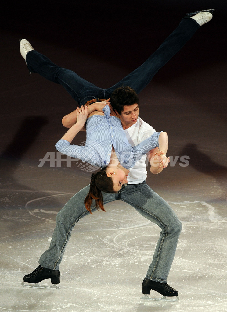 09世界フィギュアスケート選手権(%%ISU World Figure Skating Championships 2009%%)のエキシビションが29日、ロサンゼルス(Los Angeles)のステープルズ・センター(Staples Center)で行われた。写真は演技を披露するテッサ・ヴァーチュー(%%Tessa Virtue%%、左)とスコット・モイア(%%Scott Moir%%)。(2009年3月29日撮影)(c)AFP/GABRIEL BOUYS
