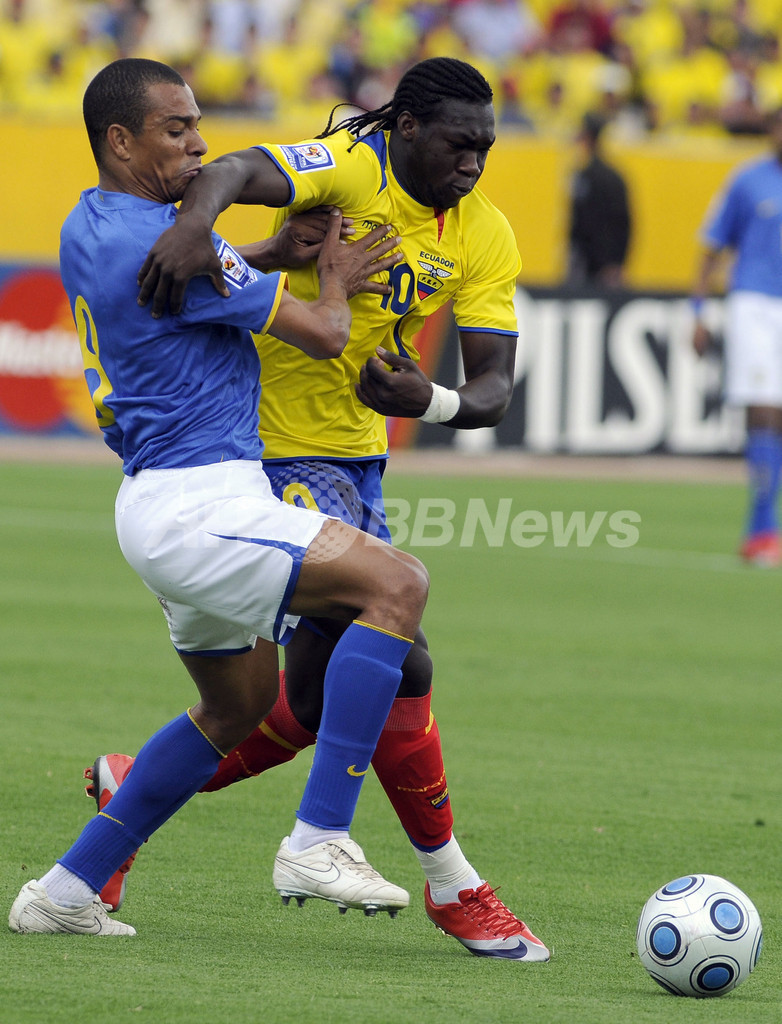 スポーツ サッカー ブラジル アウェーでエクアドルと引き分ける、W杯予選 2009年3月30日 12:25 発信地:キト/エクアドル [ 中南米 エクアドル ] このニュースをシェア ‹ › ❮ 20/20 ❯ 2010年サッカーW杯南アフリカ大会(%%2010 World Cup%%)南米予選第11節、エクアドル対ブラジル。試合は1-1の引き分けに終わった。写真はエクアドルのフェリペ・カイセド(%%Felipe Caicedo%%、右)と競り合うブラジルのジルベルト・シウヴァ(%%Gilberto Silva%%)。(2009年3月29日撮影)(c)AFP/PABLO COZZAGLIO 画像作成中 ! 【3月30日 AFP】2010年サッカーW杯南アフリカ大会(2010 World Cup)南米予選第11節、エクアドル対ブラジル。試合は1-1の引き分けに終わった。(c)AFP サッカー 一覧へ> メディア・報道関係・法人の方向け 写真・動画 購入のお問合せ>