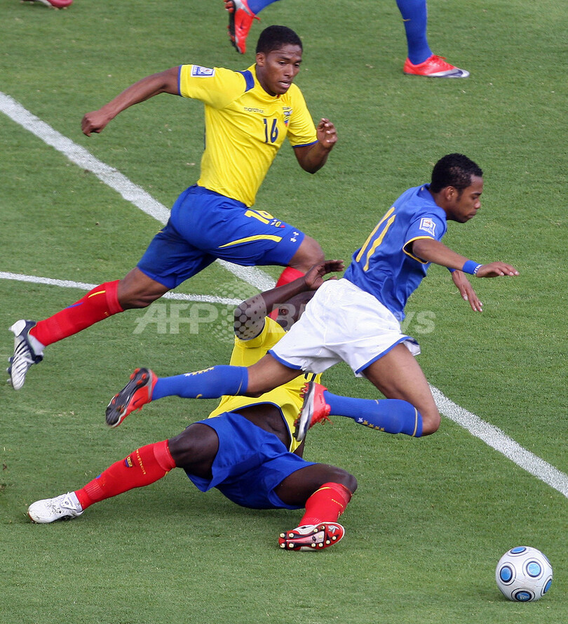スポーツ サッカー ブラジル アウェーでエクアドルと引き分ける、W杯予選 2009年3月30日 12:25 発信地:キト/エクアドル [ 中南米 エクアドル ] このニュースをシェア ‹ › ❮ 18/20 ❯ 2010年サッカーW杯南アフリカ大会(%%2010 World Cup%%)南米予選第11節、エクアドル対ブラジル。試合は1-1の引き分けに終わった。写真はエクアドルのジョバンニ・エスピノサ(%%Giovanny Espinoza%%)からスライディングを受けるブラジルのロビーニョ(%%Robinho%%、右)。(2009年3月29日撮影)(c)AFP/VANDERLEI ALMEIDA 画像作成中 ! 【3月30日 AFP】2010年サッカーW杯南アフリカ大会(2010 World Cup)南米予選第11節、エクアドル対ブラジル。試合は1-1の引き分けに終わった。(c)AFP サッカー 一覧へ> メディア・報道関係・法人の方向け 写真・動画 購入のお問合せ>