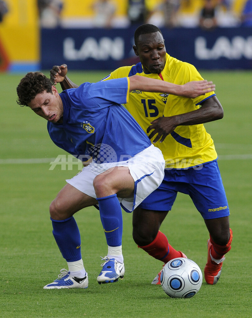 スポーツ サッカー ブラジル アウェーでエクアドルと引き分ける、W杯予選 2009年3月30日 12:25 発信地:キト/エクアドル [ 中南米 エクアドル ] このニュースをシェア ‹ › ❮ 2/20 ❯ 2010年サッカーW杯南アフリカ大会(%%2010 World Cup%%)南米予選第11節、エクアドル対ブラジル。試合は1-1の引き分けに終わった。写真はエクアドルのワルテル・アジョビ(%%Walter Ayovi%%、右)と競り合うブラジルのエラーノ(%%Elano%%)。(2009年3月29日撮影)(c)AFP/PABLO COZZAGLIO 画像作成中 ! 【3月30日 AFP】2010年サッカーW杯南アフリカ大会(2010 World Cup)南米予選第11節、エクアドル対ブラジル。試合は1-1の引き分けに終わった。(c)AFP サッカー 一覧へ> メディア・報道関係・法人の方向け 写真・動画 購入のお問合せ>