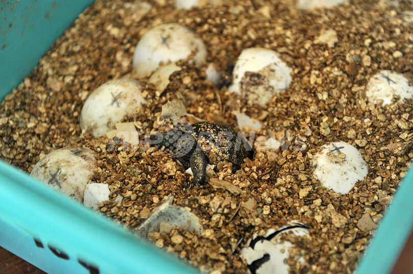 同島のプエルトアヨラ(Puerto Ayora)に1976年に設立された繁殖センターは、ゾウガメの卵を孵化させ、3歳まで同センターの保護下で育てた後、追跡調査用のICチップを取り付け、自然に戻す活動を行っている。その結果、現在までに同センターが飼育したゾウガメは840頭に達した。(c)AFP