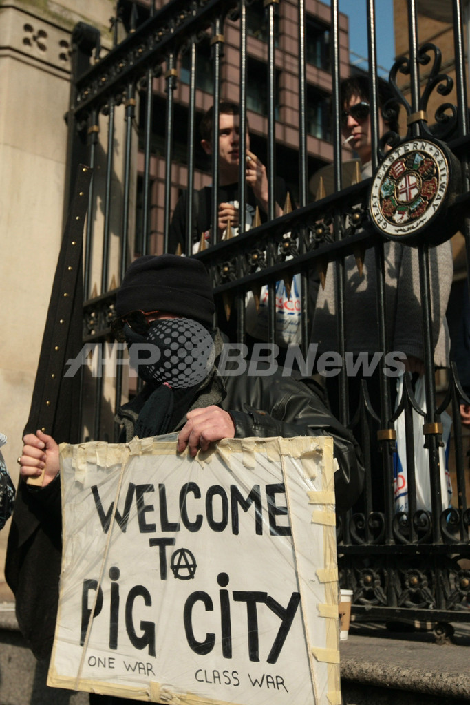 G20抗議デモ、ロンドン金融街で機動隊と衝突 RBS銀行に侵入