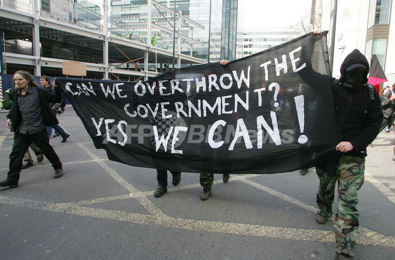 G20抗議デモ、ロンドン金融街で機動隊と衝突 RBS銀行に侵入