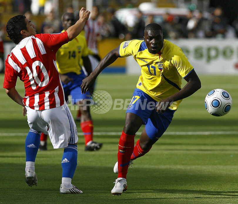スポーツ サッカー 首位パラグアイ エクアドルと分ける、W杯予選 2009年4月2日 12:44 発信地:キト/エクアドル [ 中南米 エクアドル ] このニュースをシェア ‹ › ❮ 8/10 ❯ 2010年サッカーW杯南アフリカ大会(%%2010 World Cup%%)南米予選第12節、エクアドル対パラグアイ。試合は1-1の引き分けに終わった。写真はパラグアイのサルバドール・カバニャス(%%Salvador Cabanas%%)とボールを競り合うエクアドルのジョバンニ・エスピノサ(%%Giovanny Espinoza%%、右)。(2009年4月1日撮影)(c)AFP/PABLO COZZAGLIO 画像作成中 ! 【4月2日 AFP】2010年サッカーW杯南アフリカ大会(2010 World Cup)南米予選第12節、エクアドル対パラグアイ。試合は1-1の引き分けに終わった。(c)AFP サッカー 一覧へ> メディア・報道関係・法人の方向け 写真・動画 購入のお問合せ>