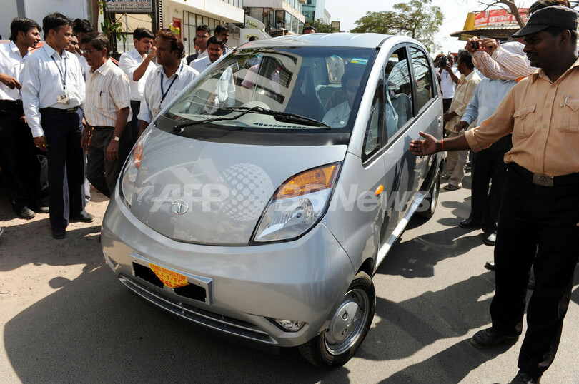 ニュース 政治・経済 超低価格小型車タタナノ、販売店のショールームに登場 2009年4月4日 11:17 発信地:インド [ アジア・オセアニア インド ] このニュースをシェア ‹ › ❮ 1/5 ❯ 3月24日に発表された10万ルピー(約20万円)の超低価格小型車「タタナノ(Tata Nano)」が1日、インド全土の販売店に登場した。各地のショールームには大勢が詰めかけ、「インド人数百万人の足に革命をもたらす」(タタ・モーターズ(Tata Motors)のラタン・タタ(Ratan Tata)会長)新型車への関心の高さがあらためて示された。写真は西部アーメダバード(Ahmedabad)のショールームに到着したタタナノ(2009年4月1日撮影)。(c)AFP/Sam PANTHAKY 画像作成中 ! 【4月4日 AFP】3月24日に発表されたタタ・モーターズ(Tata Motors)の超低価格小型車「タタナノ(Tata Nano)」が1日、インド全土の販売店に登場した。各地のショールームには大勢が詰めかけ、「インド人数百万人の足に革命をもたらす」(タタ・モーターズのラタン・タタ(Ratan Tata)会長)新型車への関心の高さがあらためて示された。(c)AFP 政治・経済 一覧へ> メディア・報道関係・法人の方向け 写真・動画 購入のお問合せ>