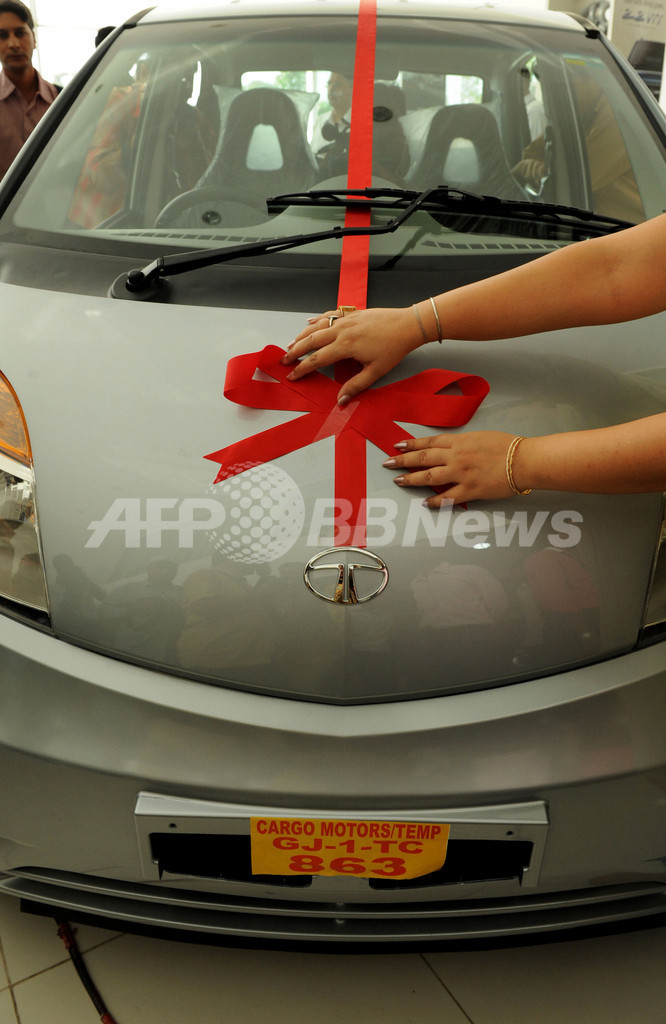 ニュース 政治・経済 超低価格小型車タタナノ、販売店のショールームに登場 2009年4月4日 11:17 発信地:インド [ アジア・オセアニア インド ] このニュースをシェア ‹ › ❮ 2/5 ❯ 3月24日に発表された10万ルピー(約20万円)の超低価格小型車「タタナノ(Tata Nano)」が1日、インド全土の販売店に登場した。各地のショールームには大勢が詰めかけ、「インド人数百万人の足に革命をもたらす」(タタ・モーターズ(Tata Motors)のラタン・タタ(Ratan Tata)会長)新型車への関心の高さがあらためて示された。写真はアーメダバード(Ahmedabad)のショールームで、女性に赤いリボンをかけられたタタナノ(2009年4月1日撮影)。(c)AFP/Sam PANTHAKY 画像作成中 ! 【4月4日 AFP】3月24日に発表されたタタ・モーターズ(Tata Motors)の超低価格小型車「タタナノ(Tata Nano)」が1日、インド全土の販売店に登場した。各地のショールームには大勢が詰めかけ、「インド人数百万人の足に革命をもたらす」(タタ・モーターズのラタン・タタ(Ratan Tata)会長)新型車への関心の高さがあらためて示された。(c)AFP 政治・経済 一覧へ> メディア・報道関係・法人の方向け 写真・動画 購入のお問合せ>