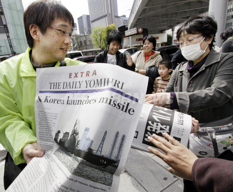 ニュース 政治・経済 「人工衛星打ち上げは成功」、朝鮮中央通信 2009年4月5日 15:47 発信地:ソウル/韓国 [ 韓国・北朝鮮 韓国 ] このニュースをシェア ‹ › ❮ 2/8 ❯ 都内で号外を配布する男性(2009年4月5日撮影)。(c)AFP/Yoshikazu TSUNO 画像作成中 ! 【4月5日 AFP】北朝鮮の朝鮮中央通信(Korean Central News Agency、KNCA)は5日午後、「我が国の科学者と技術者たちは、国家の宇宙開発計画に従い、人工衛星「光明星(Kwangmyongsong)2号」を「銀河(Unha)2号」ロケットで軌道に乗せることに成功した。衛星は正常に軌道を回っている」として、同日の打ち上げは成功したと報じた。(c)AFP 政治・経済 一覧へ> メディア・報道関係・法人の方向け 写真・動画 購入のお問合せ>