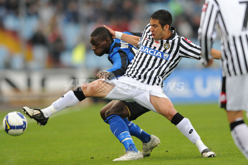 イスラは、ゴール前へのパスに走り込んだインテルのパトリック・ビエラ(Patrick Vieira)がウディネーゼのGKエマヌエレ・ベラルディ(Emanuele Belardi)をかわしたところに回り込むも、ボールを自陣ゴールに蹴り込んでしまい、このオウンゴールが最終的に決勝点となった。(c)AFP/Barnaby Chesterman