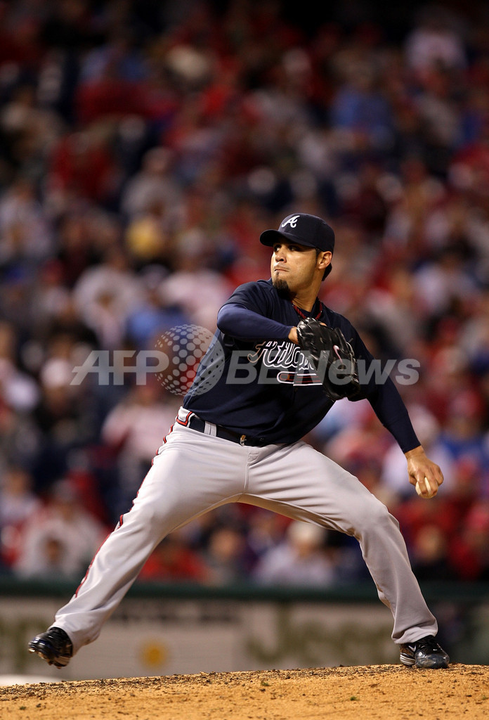 ブレーブスはロサンゼルス・ドジャース(Los Angeles Dodgers)から移籍し4年契約を結んだデレク・ロウ(Derek Lowe)が先発し、8回を投げて2安打無失点4奪三振に抑える好投を見せると、打線はブライアン・マッカン(Brian McCann)が2点本塁打、ジェフ・フランコーア(Jeff Francoeur)とジョーダン・シェーファー(Jordan Schafer)がソロ本塁打と、フィリーズの先発ブレット・マイヤーズ(Brett Myers)から計3本塁打を放った。(c)AFP