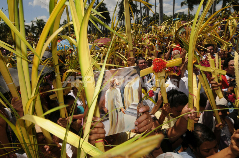 ニュース ライフ キリスト復活祭まで一週間、各地で「枝の主日」祝う 2009年4月6日 18:07 発信地:バチカン市国 [ ヨーロッパ バチカン市国 ] このニュースをシェア ‹ › ❮ 2/38 ❯ ニカラグアのマナグア(Managua)で5日、シュロの枝を手に「枝の主日(Palm Sunday)」を祝う人びと。イエス・キリスト(Jesus Christ)の復活を祝う宗教行事「復活祭(Easter)」まで一週間となり、世界各地のカトリック教会で「聖週間(Holy Week)」初日にあたる「枝の主日」が祝われた(2009年4月5日撮影)。(c)AFP/Miguel ALVAREZ 画像作成中 ! 【4月6日 AFP】イエス・キリストの復活を祝うキリスト教の宗教行事「復活祭(Easter)」まで一週間となり、世界各地のカトリック教会では信者らが「聖週間(Holy Week)」初日にあたる「枝の主日(Palm Sunday)」を祝った。バチカンのサンピエトロ広場(Saint Peter's Square)では、ローマ法王ベネディクト16世(Benedict XVI)が「枝の主日」のミサを執り行った。(c)AFP ライフ 一覧へ> メディア・報道関係・法人の方向け 写真・動画 購入のお問合せ>
