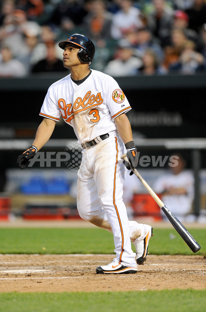 【4月7日 AFP】(写真追加)09MLB、ニューヨーク・ヤンキース(New York Yankees)の松井秀喜(Hideki Matsui)は6日、ボルティモア・オリオールズ(Baltimore Orioles)戦に4番・指名打者(DH)で先発出場し、7回表に右中間へ2点本塁打を放ち、5打数1安打2打点を記録した。試合はヤンキースが5-10でオリオールズに敗れ、シーズン開幕戦を勝利で飾ることはできなかった。(c)AFP