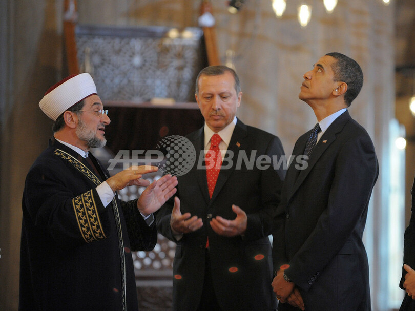 イスラム教国への初訪問となったトルコで、オバマ大統領はこの日、欧州とアジアが接する古都イスタンブール(Istanbul)を象徴するモスクを訪れ、宗教指導者や大学生と会見し、対話を望む姿勢をアピールした。