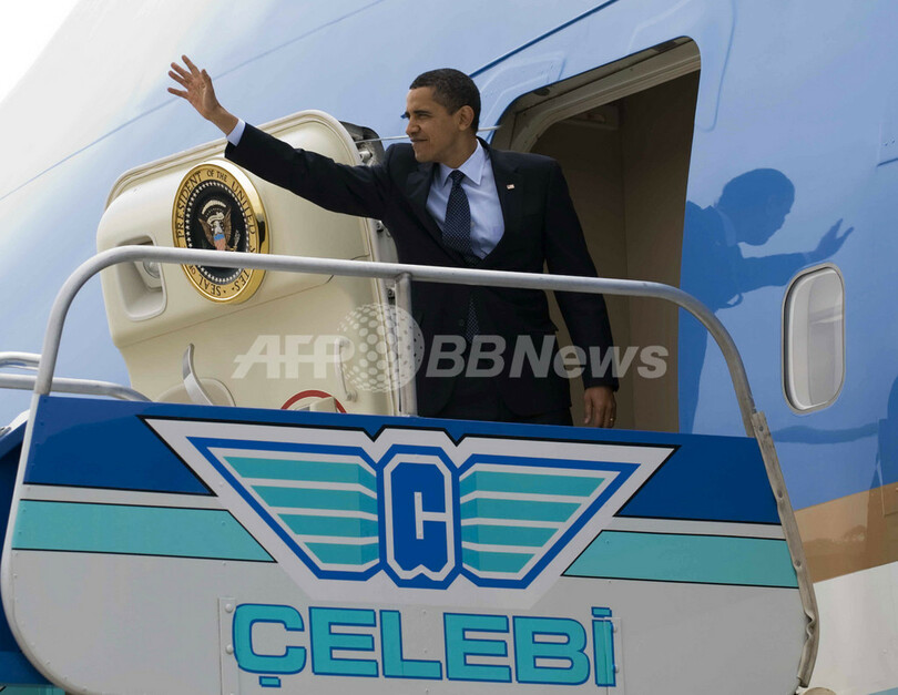今回オバマ氏は大統領就任後初の外国訪問で主要20か国・地域(G20)首脳会合(金融サミット)、北大西洋条約機構(North Atlantic Treaty Orgnisation、NATO)首脳会議、米国と欧州連合(EU)の首脳会議に出席した後、8日午後にトルコを離れ、帰国の途についた。(c)AFP/Sibel Utku Bila