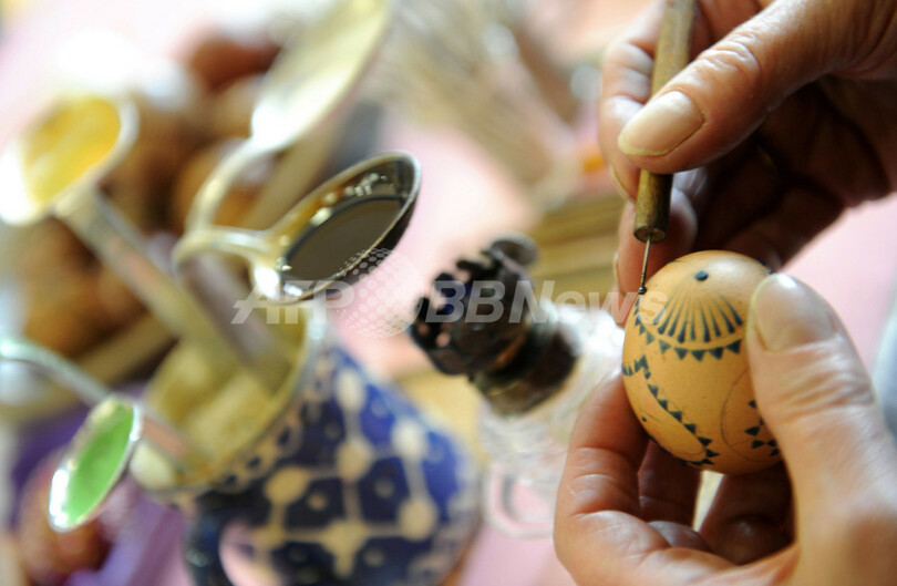 ニュース ライフ 色鮮やかなタマゴたち、イースター・エッグに絵付け ドイツ 2009年4月10日 23:15 発信地:シュプレムベルク/ドイツ [ ヨーロッパ ドイツ ] このニュースをシェア ‹ › ❮ 4/5 ❯ ドイツの少数民族、ソルブ人のワックス手法で絵付けされた、色鮮やかなイースター・エッグ。 ドイツ東部シュプレムベルク(Spremberg)では、キリスト教の復活祭(イースター)を控え、イースター・エッグの絵付け作業が進んでいる(2009年4月8日撮影)。(c)AFP/DDP/NORBERT MILLAUER 画像作成中 ! 【4月10日 AFP】ドイツ東部シュプレムベルク(Spremberg)では、キリスト教の復活祭(イースター)を控え、イースター・エッグの絵付け作業が進んでいる。(c)AFP ライフ 一覧へ> メディア・報道関係・法人の方向け 写真・動画 購入のお問合せ>
