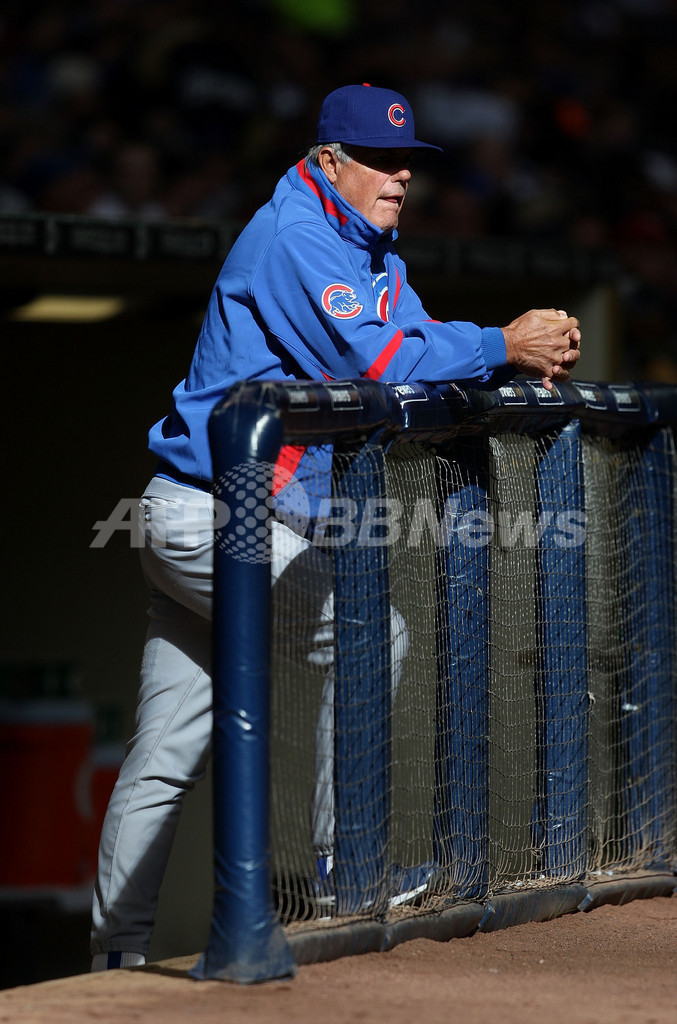 09MLB、ミルウォーキー・ブルワーズ(%%Milwaukee Brewers%%)対シカゴ・カブス(%%Chicago Cubs%%)。試合はブルワーズが4-3でサヨナラ勝ちを収めた。写真は戦況を見守るカブスのルー・ピネラ(%%Lou Piniella%%)監督。(2009年4月10日撮影)(c)AFP/Getty Images/Jonathan Daniel