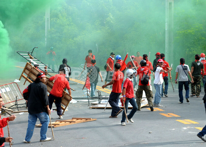 事態の悪化を受けて、タイのアピシット首相はパタヤを含むチョンブリ(Chonburi)県の非常事態宣言を発令した。(c)AFP