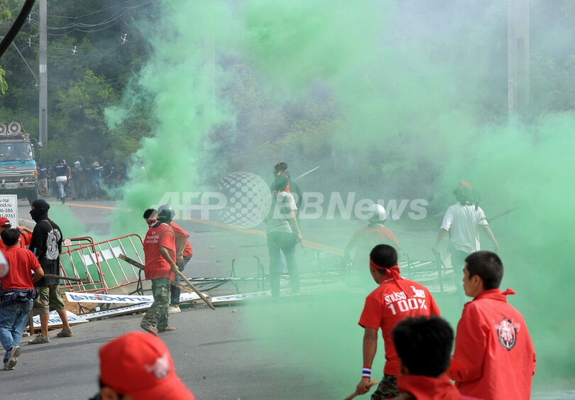 事態の悪化を受けて、タイのアピシット首相はパタヤを含むチョンブリ(Chonburi)県の非常事態宣言を発令した。(c)AFP