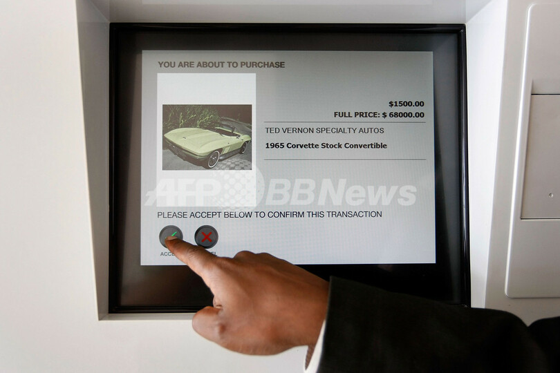 この半自動の販売機では、ヨット旅行やペントハウスの高級マンション、英国の高級車「ベントレー(Bentley)」なども購入することができる。クレジットカード払いで、歯ブラシやサングラスは扉を開けて商品を受け取る。ドイツ高級車BMWのオートバイなどは、商品の交換券の入った袋が出てくる仕組み。写真は、自動販売機のタッチパネル(2009年4月10日撮影)。(c)AFP/Getty Images/Joe Raedle
