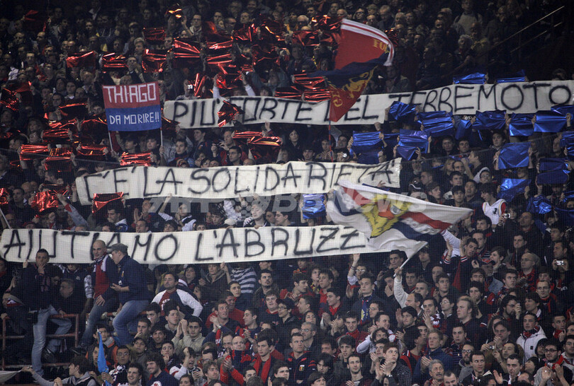 スポーツ サッカー ジェノア パラディーノの決勝点でユベントスに勝利 2009年4月12日 8:56 発信地:ジェノバ/イタリア [ ヨーロッパ イタリア ] このニュースをシェア ‹ › ❮ 14/15 ❯ 08-09イタリア・セリエA第31節、ジェノア(%%Genoa CFC%%)対ユベントス(%%Juventus%%)。試合はジェノアが3-2でユベントスを下した。写真はスタンドでイタリア中部アブルツォ(Abruzzo)州で6日発生した大地震の犠牲者へのメッセージが記された横断幕を掲げるジェノアのサポーター。(2009年4月11日撮影)(c)AFP/FABIO MUZZI 画像作成中 ! 【4月12日 AFP】08-09イタリア・セリエA第31節、ジェノア(Genoa CFC)対ユベントス(Juventus)。試合はジェノアが3-2でユベントスを下した。(c)AFP サッカー 一覧へ> メディア・報道関係・法人の方向け 写真・動画 購入のお問合せ>