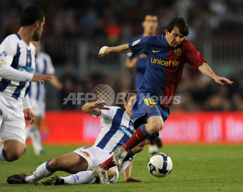 【4月12日 AFP】08-09スペイン1部リーグ第30節、FCバルセロナ(FC Barcelona)対レクレアティボ(Recreativo Huelva)。試合は2-0でバルセロナが勝利した。