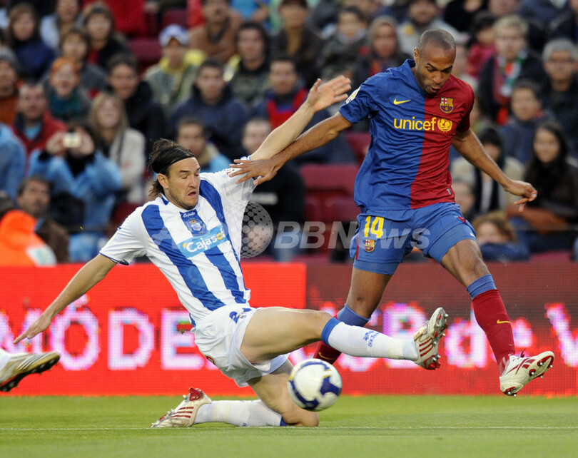 【4月12日 AFP】08-09スペイン1部リーグ第30節、FCバルセロナ(FC Barcelona)対レクレアティボ(Recreativo Huelva)。試合は2-0でバルセロナが勝利した。