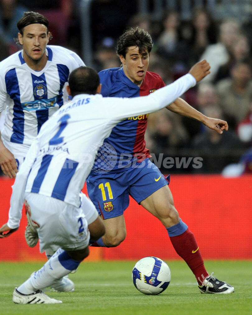 【4月12日 AFP】08-09スペイン1部リーグ第30節、FCバルセロナ(FC Barcelona)対レクレアティボ(Recreativo Huelva)。試合は2-0でバルセロナが勝利した。