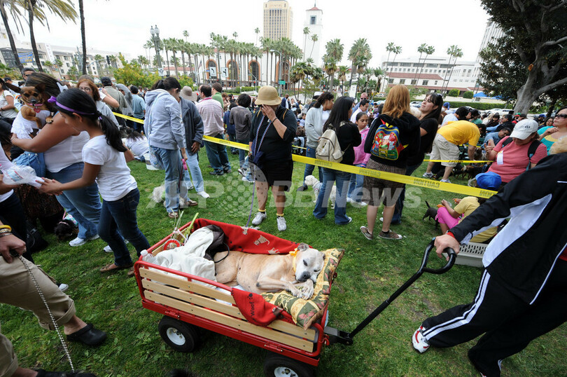 ニュース ライフ イースターサンデー前日、動物たちにも祝福を 2009年4月12日 15:38 発信地:ロサンゼルス/米国 [ 北米 米国 ] このニュースをシェア ‹ › ❮ 23/30 ❯ イエス・キリストの復活を祝うキリスト教の宗教行事「復活祭(Easter)」の前日にあたる11日、カリフォルニア(California)州ロサンゼルス(Los Angeles)でロジャー・マホーニー(Roger Mahony)枢機卿の祝福を受けるため四輪車に乗せられ順番を待つボクサー。動物たちが人間の役に立っていることへのお礼として行われる動物への祝福は、復活祭前日の恒例行事となっている(2009年4月11日撮影)。(c)AFP/Robyn BECK 画像作成中 ! 【4月12日 AFP】イエス・キリストの復活を祝うキリスト教の宗教行事「復活祭(Easter)」の前日にあたる11日、カリフォルニア(California)州ロサンゼルス(Los Angeles)でロジャー・マホーニー(Roger Mahony)枢機卿から祝福の聖水を振りかけてもらうイヌ。動物たちが人間の役に立っていることへのお礼として行われる動物への祝福は、復活祭前日の恒例行事となっている。(c)AFP ライフ 一覧へ> メディア・報道関係・法人の方向け 写真・動画 購入のお問合せ>