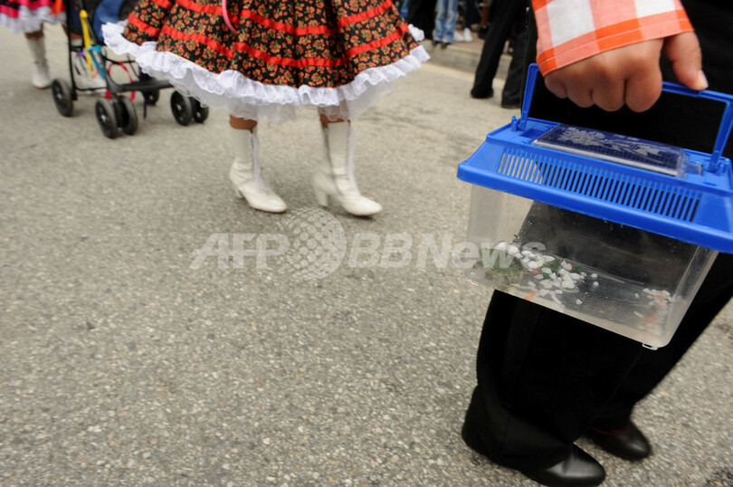 ニュース ライフ イースターサンデー前日、動物たちにも祝福を 2009年4月12日 15:38 発信地:ロサンゼルス/米国 [ 北米 米国 ] このニュースをシェア ‹ › ❮ 14/30 ❯ イエス・キリストの復活を祝うキリスト教の宗教行事「復活祭(Easter)」の前日にあたる11日、カリフォルニア(California)州ロサンゼルス(Los Angeles)でロジャー・マホーニー(Roger Mahony)枢機卿の祝福を受けるため、民族衣装を着てペットを抱き順番を待つ人びと。動物たちが人間の役に立っていることへのお礼として行われる動物への祝福は、復活祭前日の恒例行事となっている(2009年4月11日撮影)。(c)AFP/Robyn BECK 画像作成中 ! 【4月12日 AFP】イエス・キリストの復活を祝うキリスト教の宗教行事「復活祭(Easter)」の前日にあたる11日、カリフォルニア(California)州ロサンゼルス(Los Angeles)でロジャー・マホーニー(Roger Mahony)枢機卿から祝福の聖水を振りかけてもらうイヌ。動物たちが人間の役に立っていることへのお礼として行われる動物への祝福は、復活祭前日の恒例行事となっている。(c)AFP ライフ 一覧へ> メディア・報道関係・法人の方向け 写真・動画 購入のお問合せ>