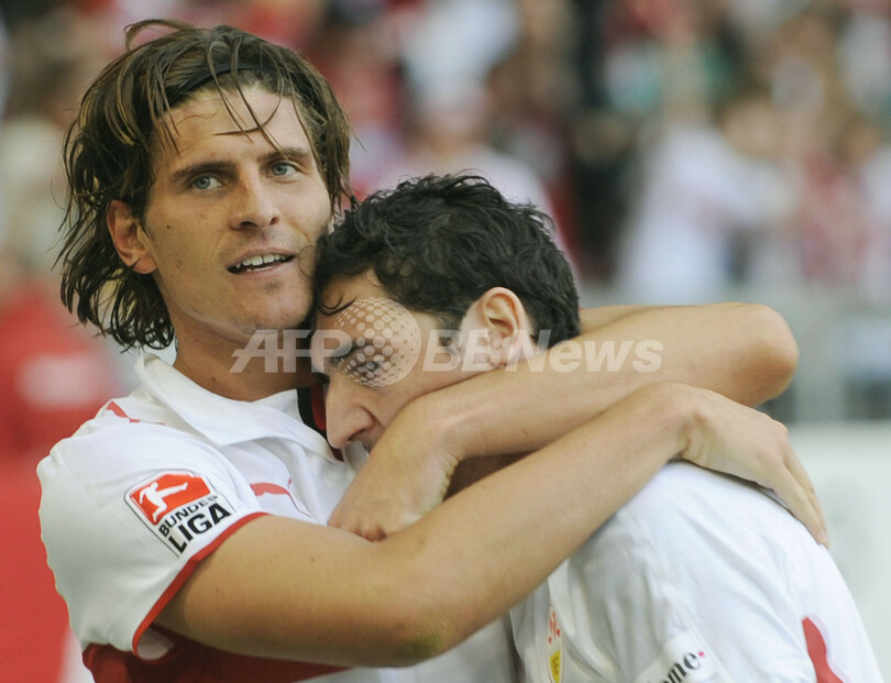 スポーツ サッカー シュツットガルト ハンブルガーSVに勝利 2009年4月13日 12:02 発信地:ベルリン/ドイツ [ ヨーロッパ ドイツ ] このニュースをシェア ‹ › ❮ 3/5 ❯ 08-09ドイツ・ブンデスリーガ1部第27節、VfBシュツットガルト(%%VfB Stuttgart%%)対ハンブルガーSV(%%Hamburger SV%%)。試合は後半ロスタイムにマリオ・ゴメス(%%Mario Gomez%%)がゴールを決め、シュツットガルトが勝利した。リーグ優勝を目指すハンブルガーSVは、手痛い敗戦を喫し、3位に後退した。写真はゴールを決めてロベルト・ヒルベルト(%%Roberto Hilbert%%)から祝福されるVfBシュツットガルトのマリオ・ゴメス(左)。(2009年4月12日撮影)(c)AFP/DDP/OLIVER LANG 画像作成中 ! 【4月13日 AFP】08-09ドイツ・ブンデスリーガ1部第27節、VfBシュツットガルト(VfB Stuttgart)対ハンブルガーSV(Hamburger SV)。試合は後半ロスタイムにマリオ・ゴメス(Mario Gomez)がゴールを決め、シュツットガルトが勝利した。リーグ優勝を目指すハンブルガーSVは、手痛い敗戦を喫し、3位に後退した。(c)AFP サッカー 一覧へ> メディア・報道関係・法人の方向け 写真・動画 購入のお問合せ>