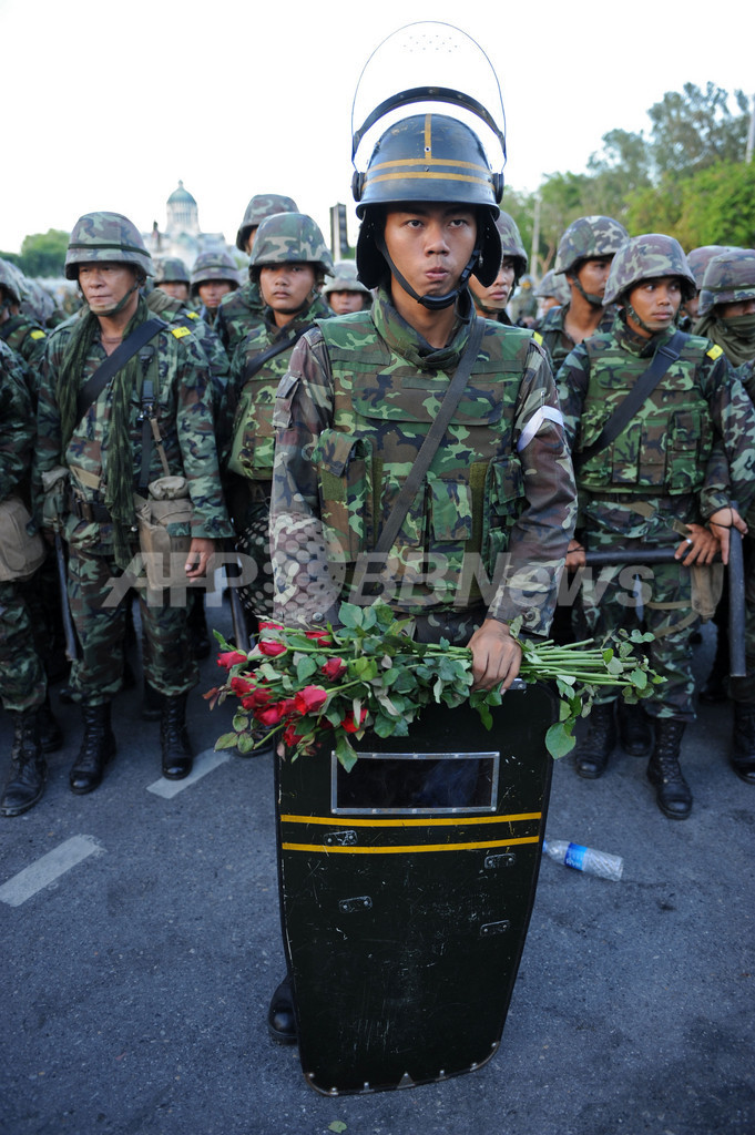 【4月13日 AFP】(写真追加)タイの首都バンコク(Bangkok)で政府に抗議を続けているタクシン・シナワット(Thaksin Shinawatra)元首相派のデモは13日も激化し、火炎瓶を投げ込まれた教育省の関連庁舎1棟が炎上した。