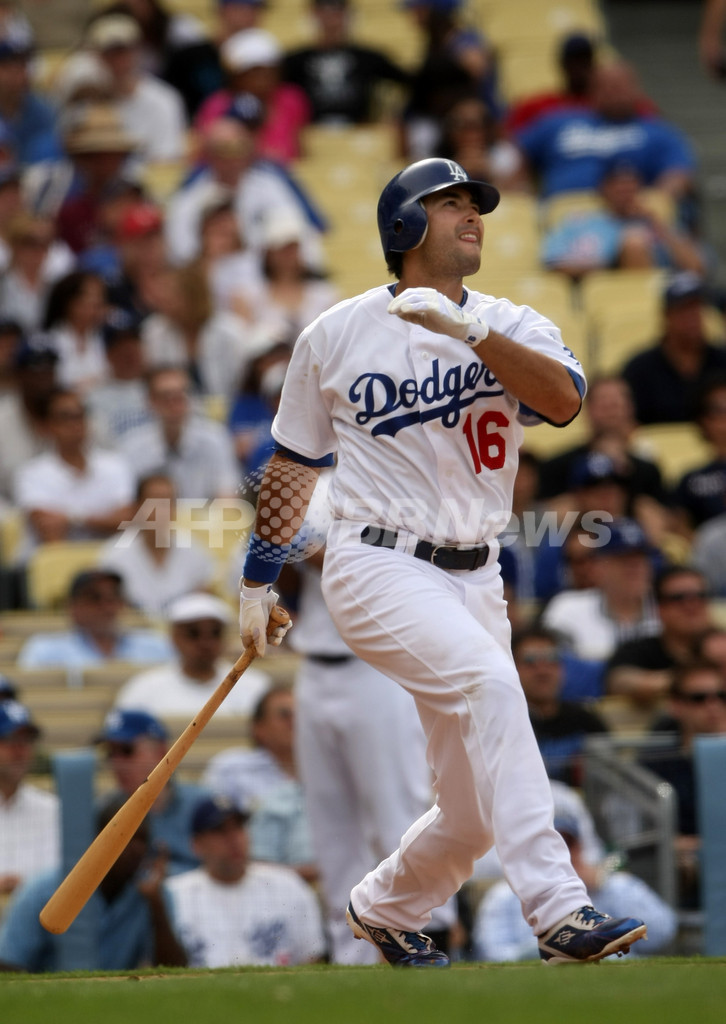 ドジャースでは1970年5月7日のウェス・パーカー(Wes Parker)氏以来、ドジャー・スタジアムでは初めてのサイクル安打を達成したハドソンは、同記録を遂げた球団史上9人目の選手となった。(c)AFP