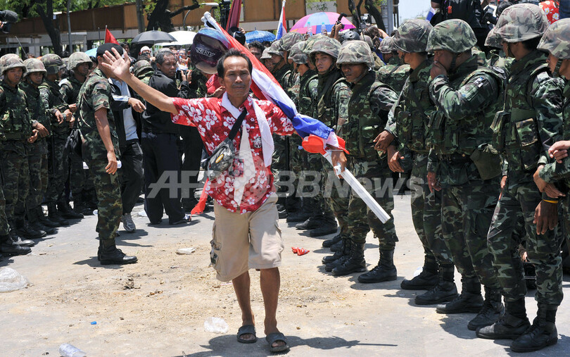 【4月14日 AFP】タイの首都バンコク(Bangkok)の首相官邸前で、現政権の退陣を求める抗議デモを展開していたタクシン・シナワット(Thaksin Shinawatra)元首相派は14日、軍による弾圧の回避を理由に幹部らが解散を呼び掛けたことに応じ、撤収を開始した。