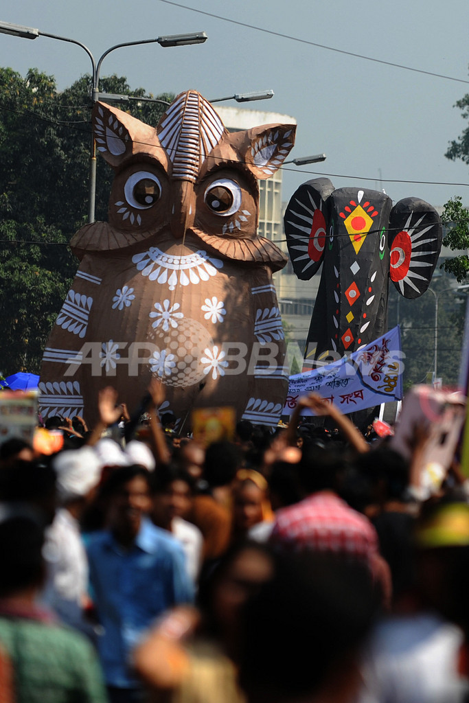 ニュース ライフ ベンガル新年「ポヘラ・ボイシャク」を祝う人々、バングラデシュ 2009年4月15日 13:00 発信地:ダッカ/バングラデシュ [ アジア・オセアニア バングラデシュ ] このニュースをシェア ‹ › ❮ 3/12 ❯ ベンガル暦の新年「ポヘラ・ボイシャク(Pohela Baishakh、ベンガル新年)」を迎えた14日、バングラデシュの首都ダッカ(Dhaka)での祭りで、ゾウとフクロウのオブジェを掲げる人々(2009年4月14日撮影)。(c)AFP/Munir uz ZAMAN 画像作成中 ! 【4月15日 AFP】ベンガル暦の新年「ポヘラ・ボイシャク(Pohela Baishakh、ベンガル新年)」を迎えた14日、バングラデシュの首都ダッカ(Dhaka)に集まり祝う人々。(c)AFP ライフ 一覧へ> メディア・報道関係・法人の方向け 写真・動画 購入のお問合せ>