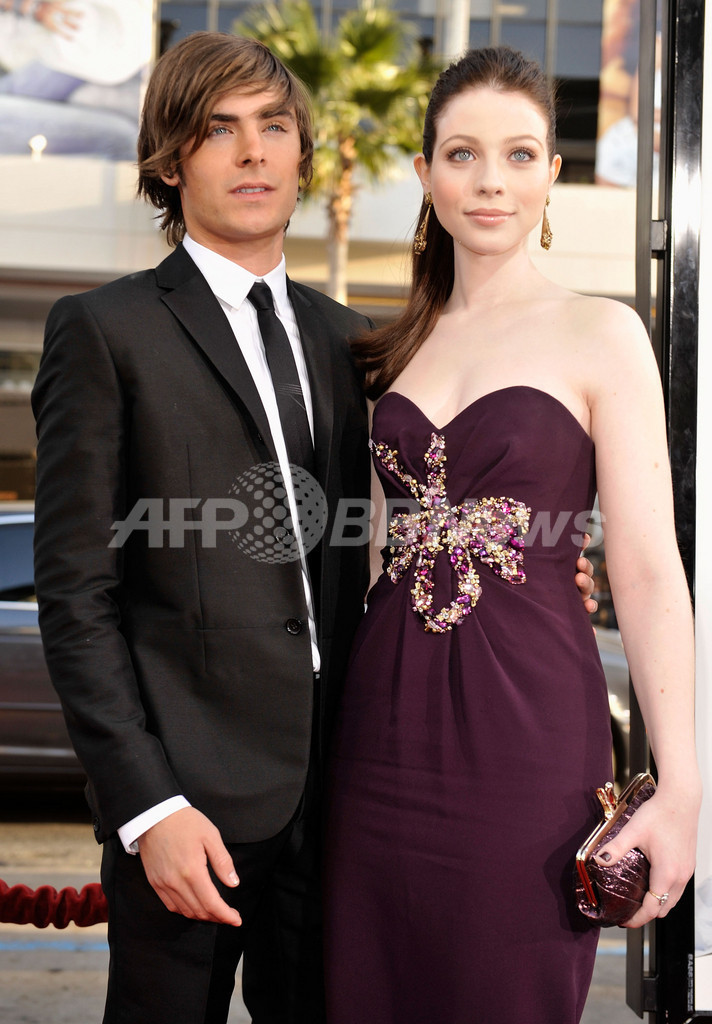 米カリフォルニア(California)州ハリウッド(Hollywood)のグローマンズ・ チャイニーズ・シアター(Grauman's Chinese Theatre)でワーナー・ブラザース(Warner Bros.)の配給映画『セブンティーン・アゲイン(17 Again)』のプレミア上映会に出席した、出演者のミシェル・トラクテンバーグ(Michelle Trachtenberg、右)と、ザック・エフロン(Zac Efron、2009年4月14日撮影)。(c)AFP/Getty Images/Kevin Winter