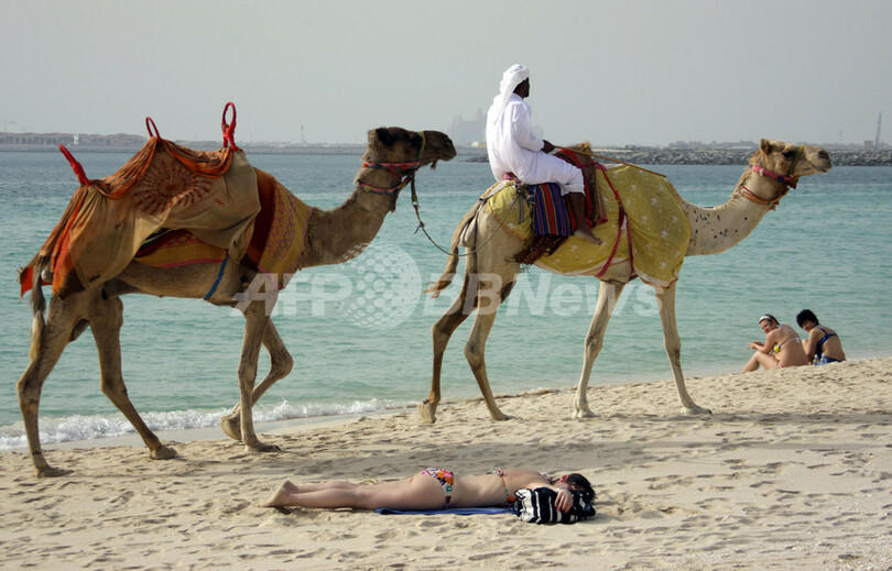 ニュース ライフ こぼれ話 ラクダも日光浴?ドバイのビーチ 2009年4月17日 16:56 発信地:ドバイ/アラブ首長国連邦 [ 中東・北アフリカ アラブ首長国連邦 ] このニュースをシェア ‹ › ❮ 1/4 ❯ アラブ首長国連邦(UAE)のドバイ(Dubai)のビーチで、日光浴をする外国人女性のそばを通り過ぎるラクダに乗った男性(2009年4月16日撮影)。(c)AFP/KARIM SAHIB 画像作成中 ! 【4月17日 AFP】アラブ首長国連邦(UAE)のドバイ(Dubai)のビーチで、日光浴をする外国人女性のそばを通り過ぎるラクダ。(c)AFP ライフ 一覧へ> メディア・報道関係・法人の方向け 写真・動画 購入のお問合せ>
