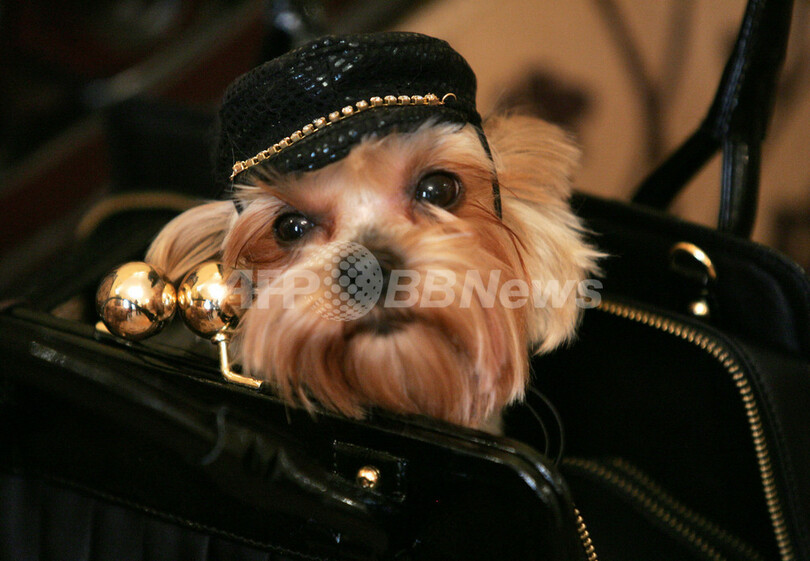 経済危機にもかかわらず、ロシアのペット愛好家が4本足の友だちのファッションにかける意気込みは変わらないようだ(2009年3月18日撮影)。(c)AFP/DMITRY KOSTYUKOV