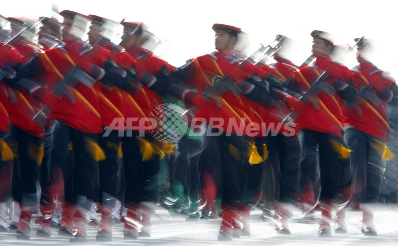 ニュース 政治・経済 こぼれ話 「軍隊の日」、イランで軍事パレード 2009年4月18日 20:40 発信地:テヘラン/イラン [ 中東・北アフリカ イラン ] このニュースをシェア ‹ › ❮ 3/8 ❯ イランのテヘラン(Tehran)で「軍隊の日(Army Day)」の18日、軍事パレードが行われ、同国のマフムード・アフマディネジャド(Mahmoud Ahmadinejad)大統領は軍隊を地域安全保障の「保証人」と称賛した。写真は、パレードで行進するイラン軍兵士ら(2009年4月18日撮影)。(c)AFP/BEHROUZ MEHRI 画像作成中 ! 【4月18日 AFP】イランのテヘラン(Tehran)で「軍隊の日(Army Day)」の18日、軍事パレードが行われ、同国のマフムード・アフマディネジャド(Mahmoud Ahmadinejad)大統領は軍隊を地域安全保障の「保証人」と称賛した。(c)AFP 政治・経済 一覧へ> メディア・報道関係・法人の方向け 写真・動画 購入のお問合せ>