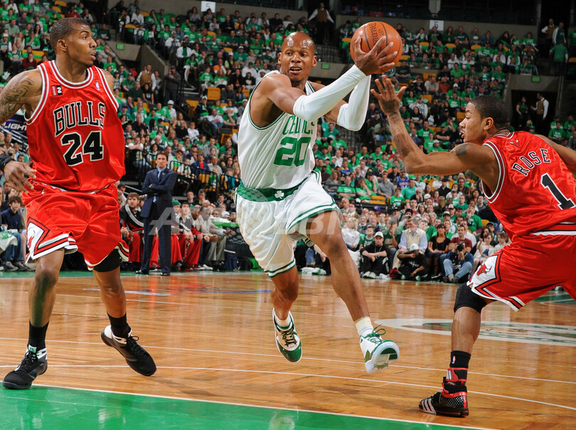 07-08シーズンにNBA最多記録となる通算17度目のファイナル制覇を成し遂げたセルティックスは、レイジョン・ロンド(Rajon Rondo)が29得点、ポール・ピアース(Paul Pierce)が23得点を記録するも、レイ・アレン(Ray Allen)がフィールドゴール(FG)12本のうち1本しか成功せず4得点に終わり精彩を欠いた。(c)AFP